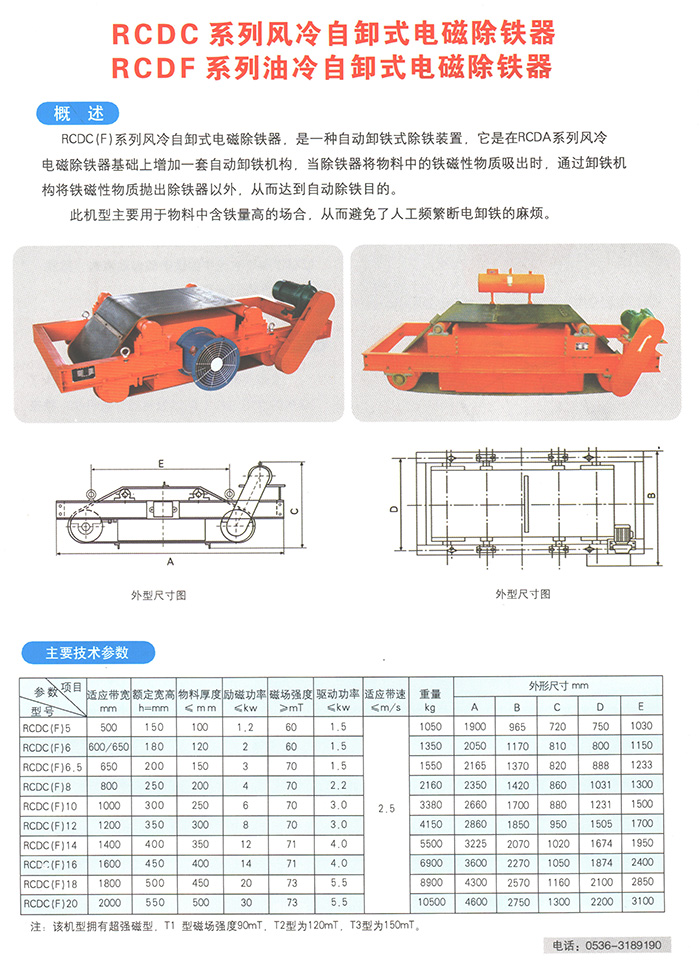 RCDC系列风冷自卸式电磁除铁器/RCDF系列油冷自卸式电磁除铁器